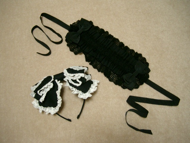 黒のヘッドドレスと、黒×白レースのリボンカチューシャです