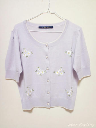 マーガレット刺繍半袖ニットカーディガン / LAVENDERF i.n.tらしいガーリィなカーデ