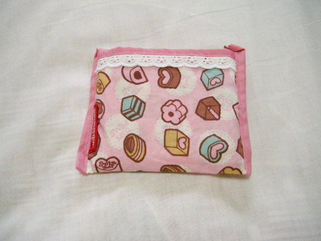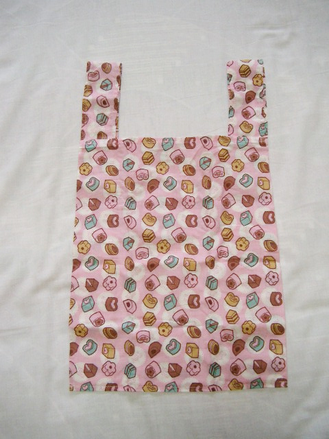 迷わずお菓子柄(笑)形はトートバッグ型もあったけど、こっちの方がマチがあってお弁当とか入れやすそうなのでこっちにしました。