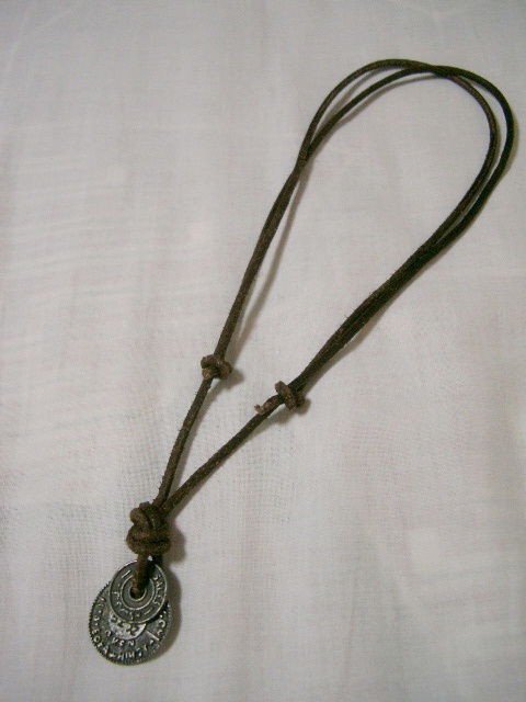 前に買った鍵モチーフのネックレスは、てっぺんのクロスの下でもげて落としてしまいましたorz なので新しく買いました。ついてたチェーンは外して革ひもに変えました。