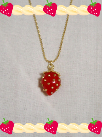 つけてるのはこの間買ったいちごのネックレスです