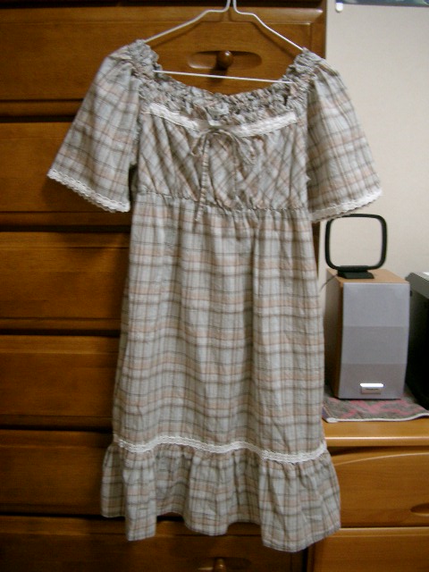 柄は素朴なチェックでナチュラルな感じ、形は胸下切り替えでベビードールみたいで可愛いです(´`*)