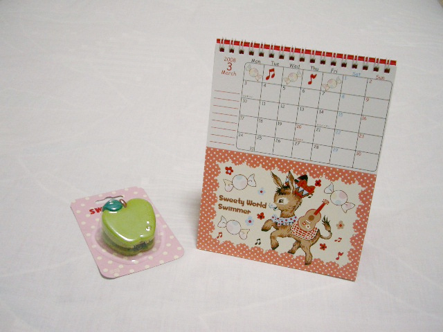 2000円以上買うともらえるカレンダーと、ホットペッパーのクーポン持って1500円以上買うともらえるりんごのホッチキス。
