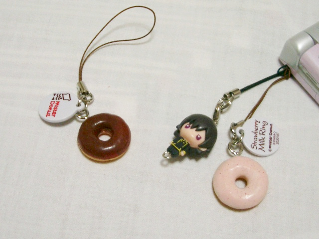 らしん●ん横のガシャポン(ガチャポン?)で買ったミスドストラップ。100円の割に良い出来です。
