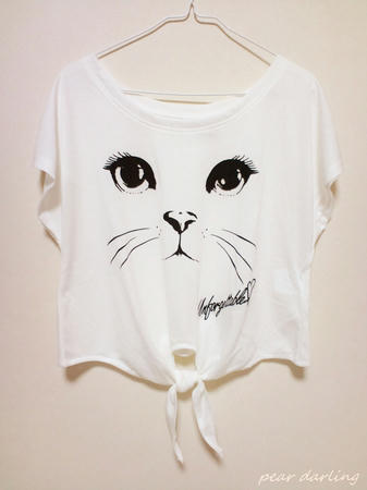 前結びネコT / 白ネコちゃんの顔がプリントされたにゃんとも可愛いTシャツ