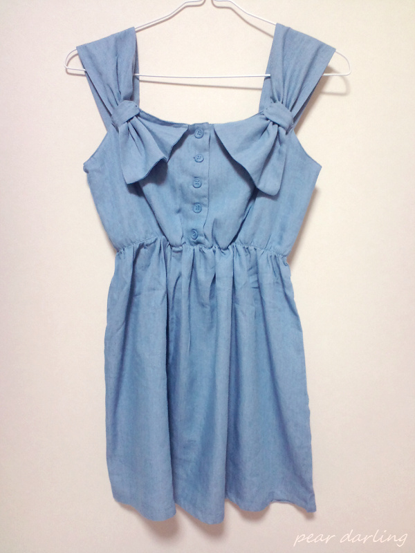 肩リボンダンガリーワンピ2000円以上で送料無料なので、ワンピも1枚買おうと思いこちらをチョイス♪