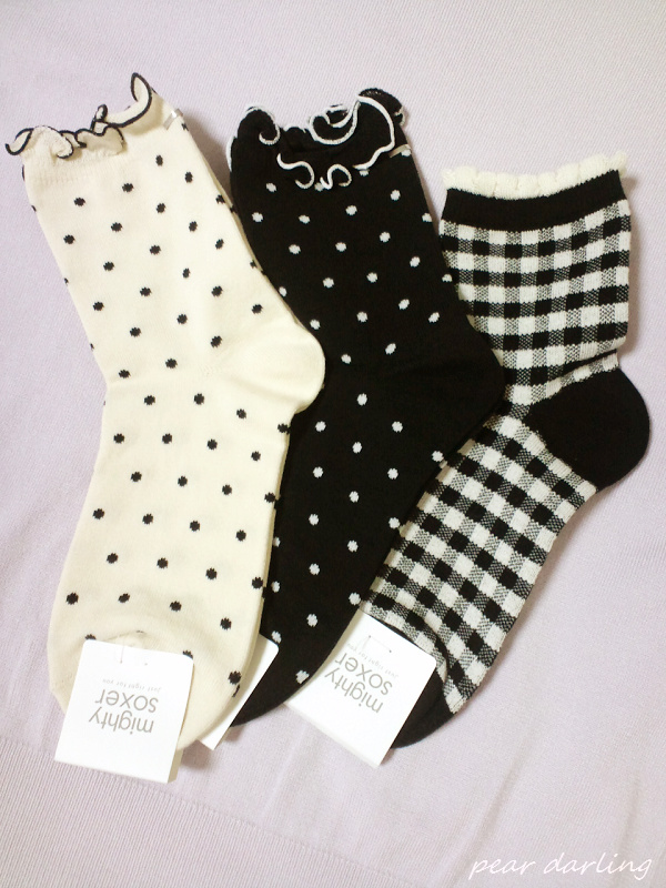 ドット柄のは履き口のメロウフリルがさり気なくかわいい