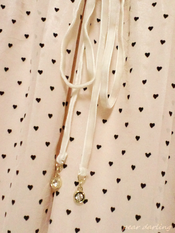 ベビーピンクのシフォン生地にハートドットのフロッキープリントで、