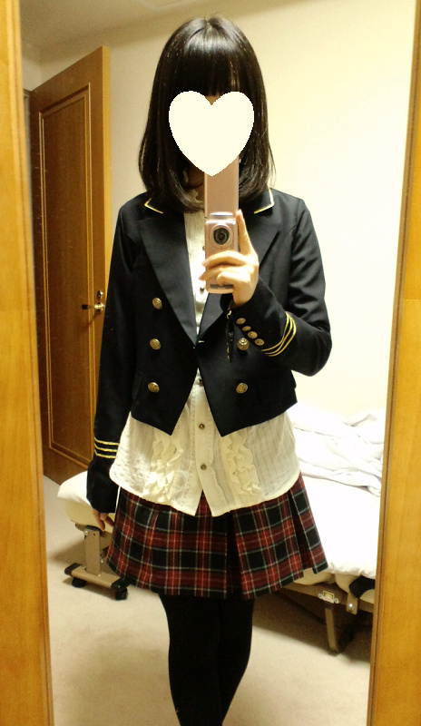 10/26のコーデ金ライン入り紺ジャケット×チェックスカートでAKBコーデ!