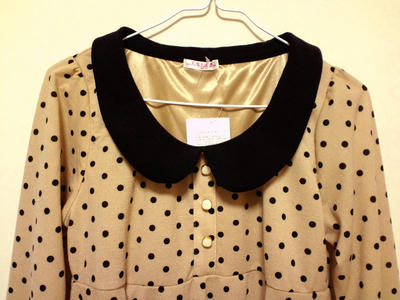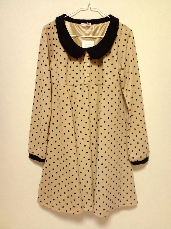 襟付きドット柄ワンピ /ベージュ今年定番の襟付きワンピ。