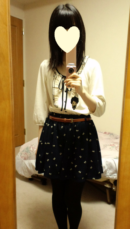 セーラーカットソーに他のブラウスのボウタイを結んでみました♪