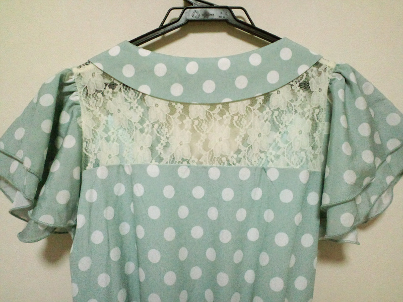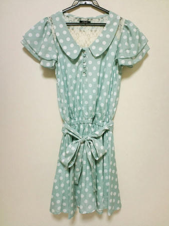 ハニーズ 水色ドット柄ワンピハンガーに掛けると上手く撮れなかったのでmixi用の写真を持ってきました