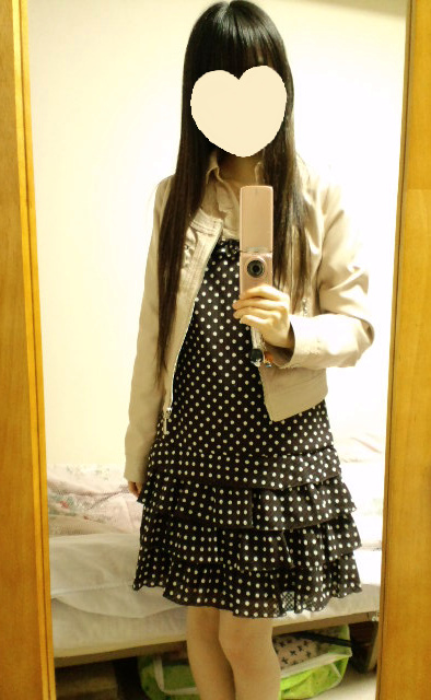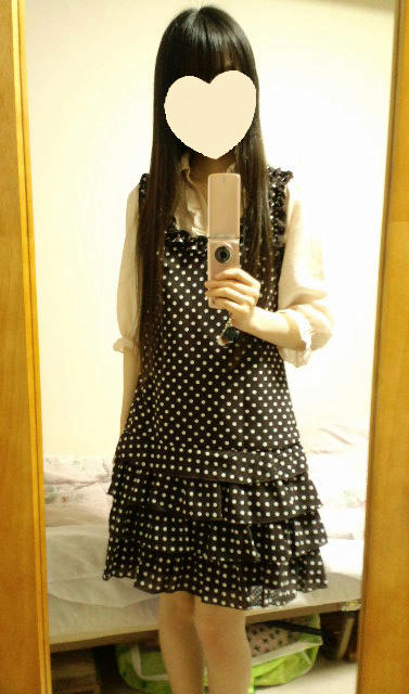 22日のコーデ去年夏のセールで買ったドット柄ワンピを活用w