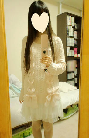 23日のコーデ前回載せたリボンニットに、ドットチュールスカートを合わせました。