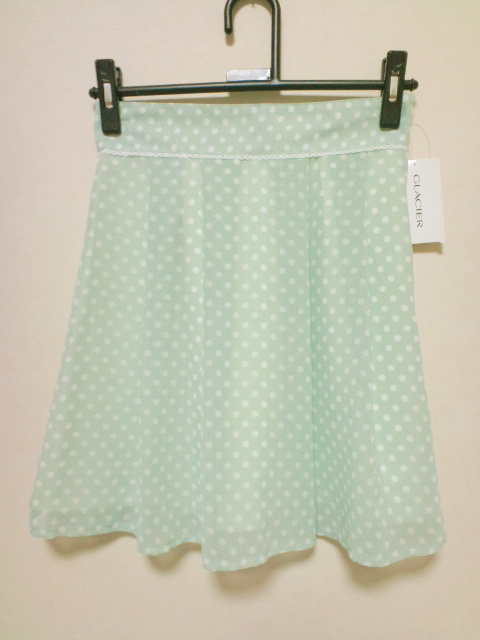 ドット柄シフォンスカート/グリーン色チ買いしちゃいました