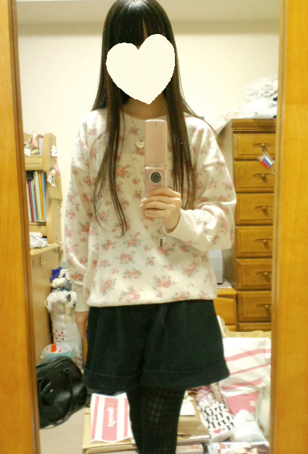 花柄ニットに黒のショーパンを合わせました。