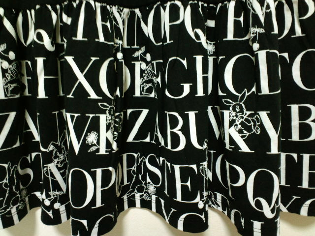 アルファベットバニーワンピ裾のプリントのアップ