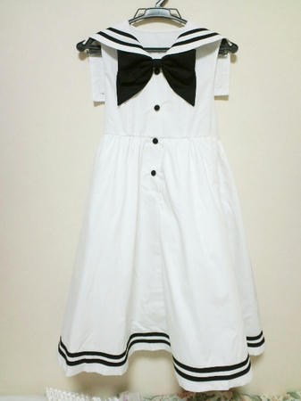 ノースリーブセーラーワンピ 白夏らしい白地に黒ラインのセーラーワンピ