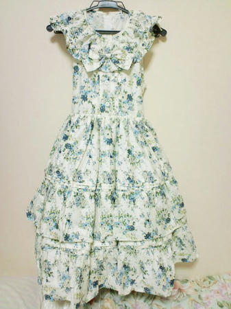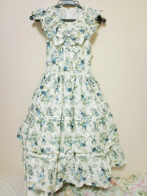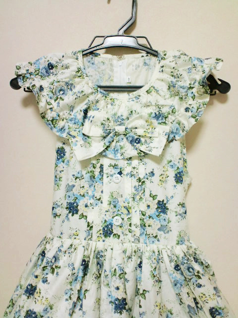 ブルーの花柄ワンピ豪華なデザインに惹かれてつい買ってしまいました(><*