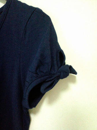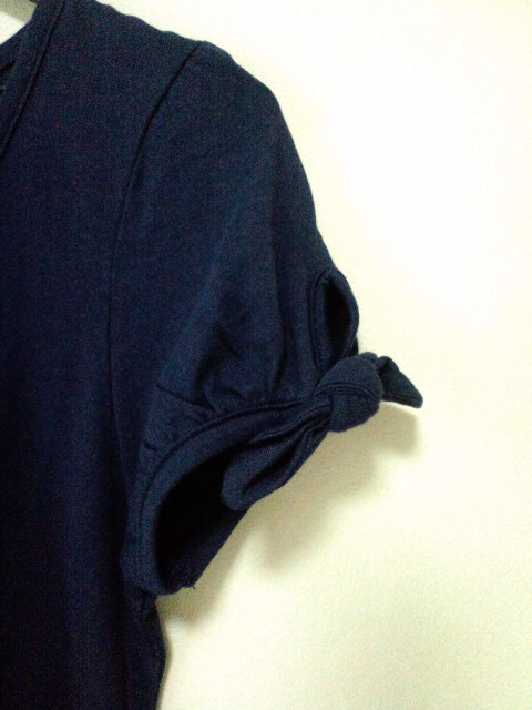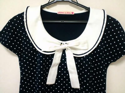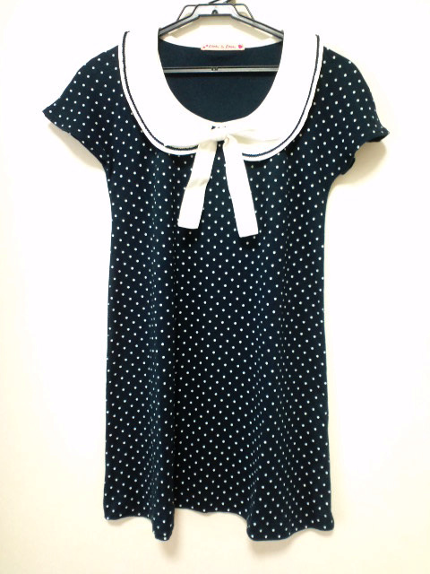Baby&Baby フラットカラーワンピ ネイビー×白ドット襟とリボンがかわいいカットソーワンピ