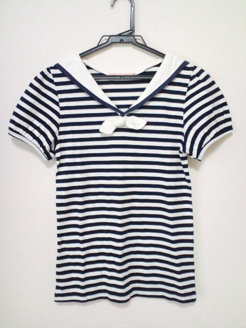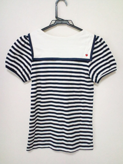 Baby&Baby セーラーカラーカットソー 白×ネイビーボーダー