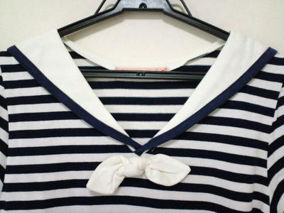 8日のコーデBaby&Babyのジャンスカに、インナーはキャサリンコテージのセーラーカットソーを合わせました。