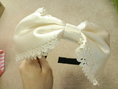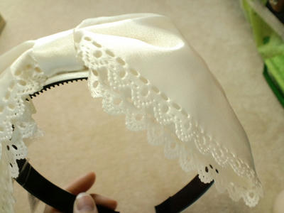 手持ちの細めの白リボンカチューシャが変色して使えなくなっちゃってたので…w