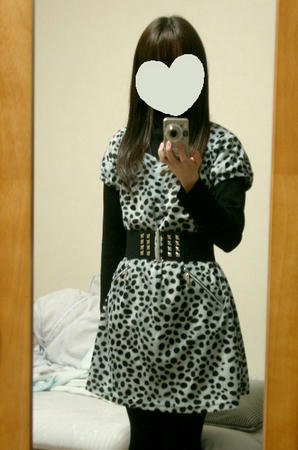 ワンピのリボンを外してスタッズベルトをして、辛めに着てみました★