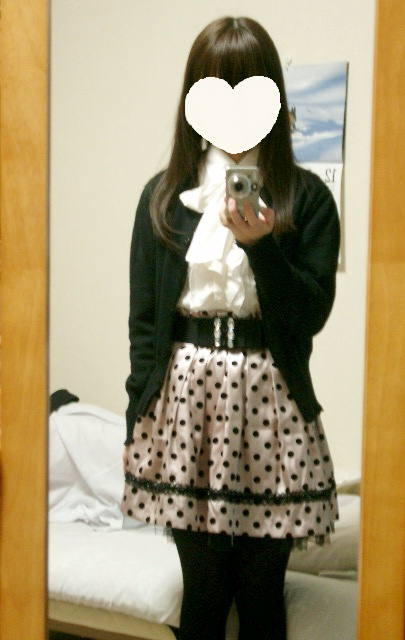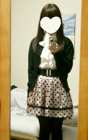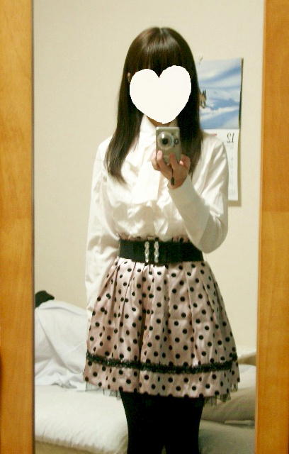 ピンクのドットスカートを白ブラウスで着てみました。