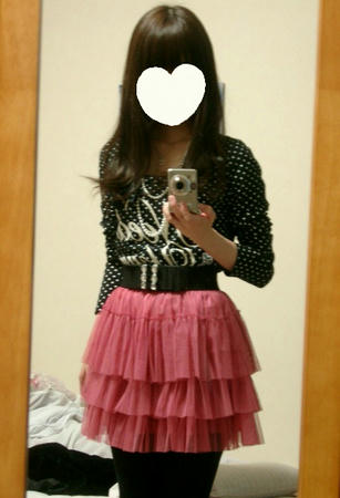 ピンクのチュールスカート×ドットTシャツってかなりハデですよね~。