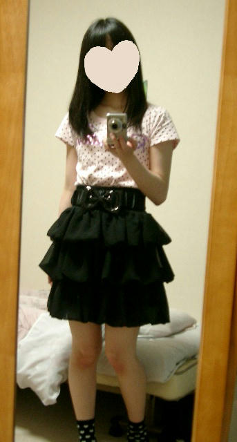 柄物のトップス+ドットスカートじゃやっぱりうるさくて…黒の無地のスカートが欲しかったんです。