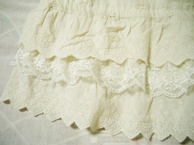 綿レースとチュールレースの三段フリルが可愛い(´`*)