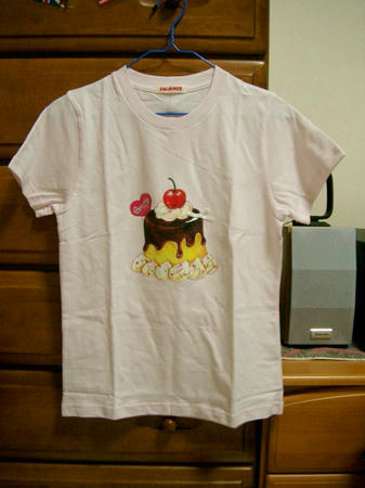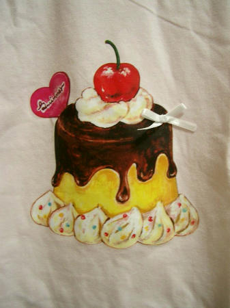 このTシャツとペチパンツとブローチ合わせたらちょう可愛いと思う。これは小物も全部お菓子で揃えるべきですね。幸いスイーツモチーフはアホほど持ってますし(でももっと欲しい)