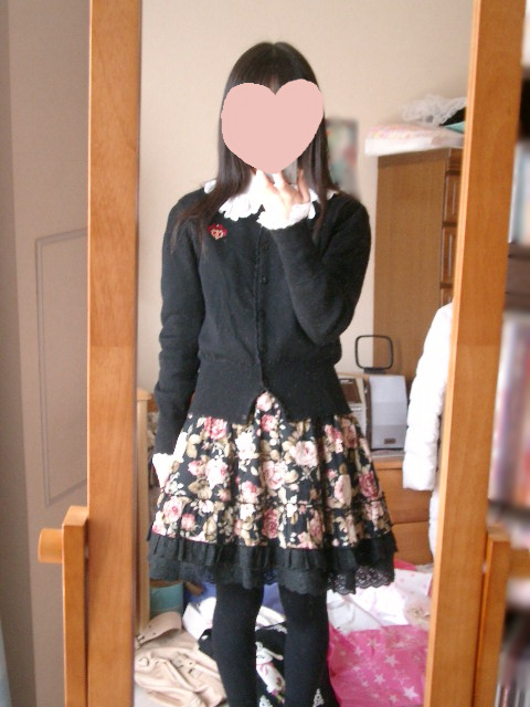 白ブラウス+黒カーデの、スカート別バージョンです☆
