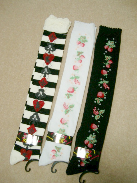 真ん中のはちょっと真っ白すぎますが…まぁピンクロリには合うだろうヽ(´ー`)ノ ずっと前に買ったピンクニーソは色が濃すぎて使えなかった…。